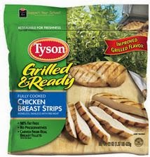boneless, skinless chicken breasts from the grocery for the packaged Tyson product. Get the biggest package of raw chicken, and all